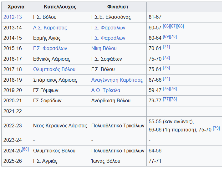 Κυπελλούχοι Θεσσαλίας 2026