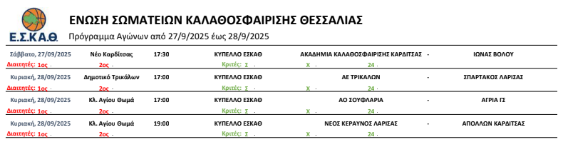 Σάββατο 04/10/2025 Κλειστό Αγίου Θωμά 20:00 ΑΟ ΣΟΥΦΛΑΡΙΑ - ΑΓΡΙΑ ΓΣ